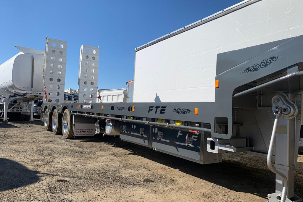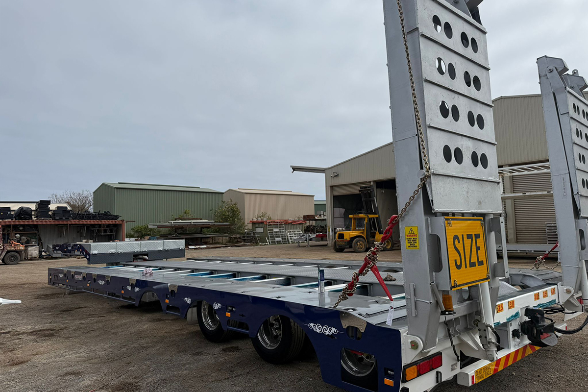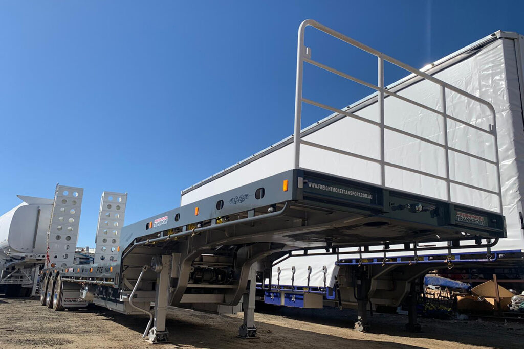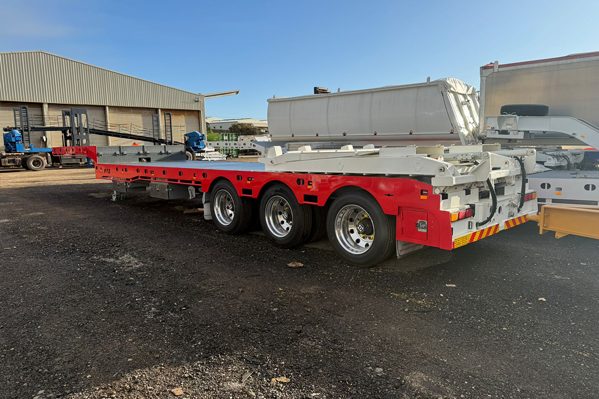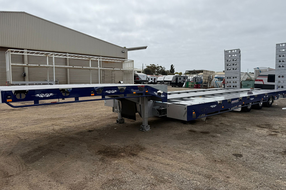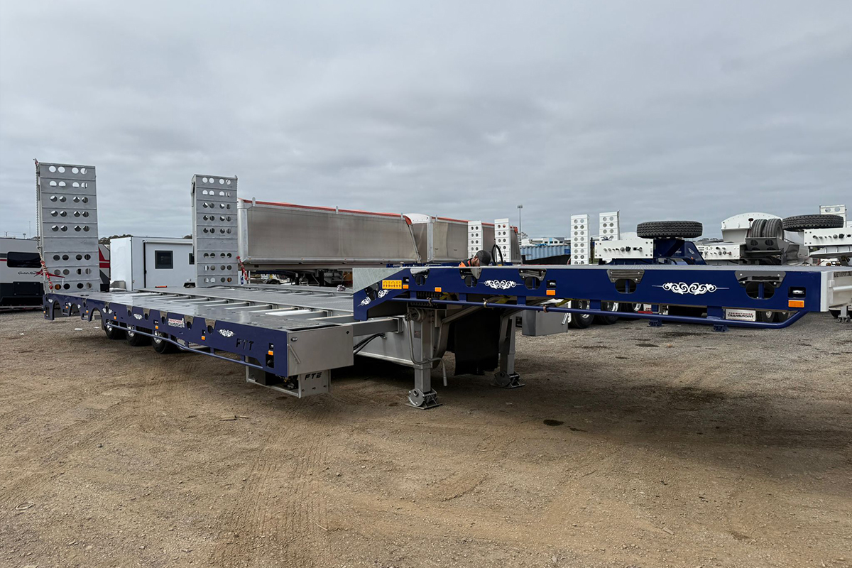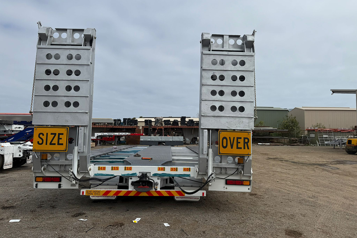 Heavy Duty, 3.5 m Hydraulic Widener , 3-way twist lock & container pins, 2 Toolboxes , Flip over Top deck Ramps, Gate Pockets, Alloy wheels , 20,000LBS Hydraulic Winch, Bi-Fold Ramps with single Beacon, Road Train Bracket, Airbag Suspension, K-Hitch Axles & K-Hitch Suspension, JOST or K-Hitch Landing Legs, EBS/ABS brakes, PBS compatible.