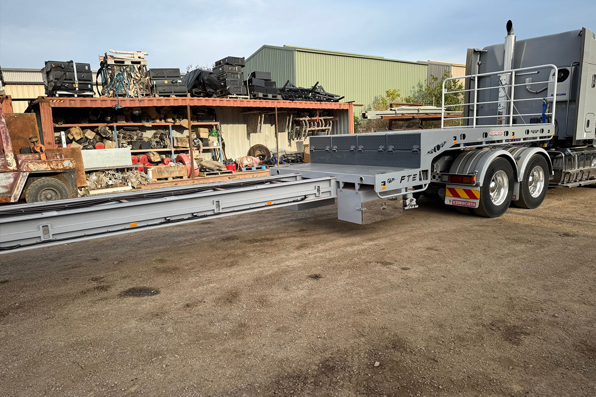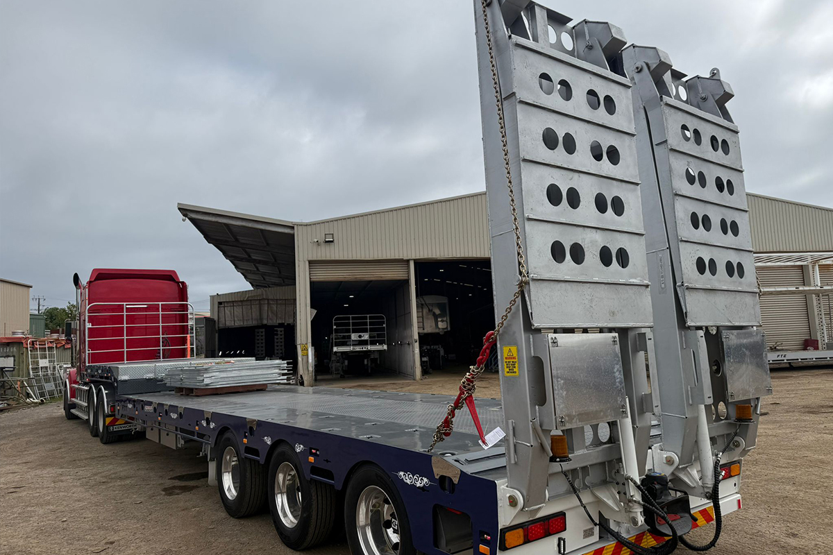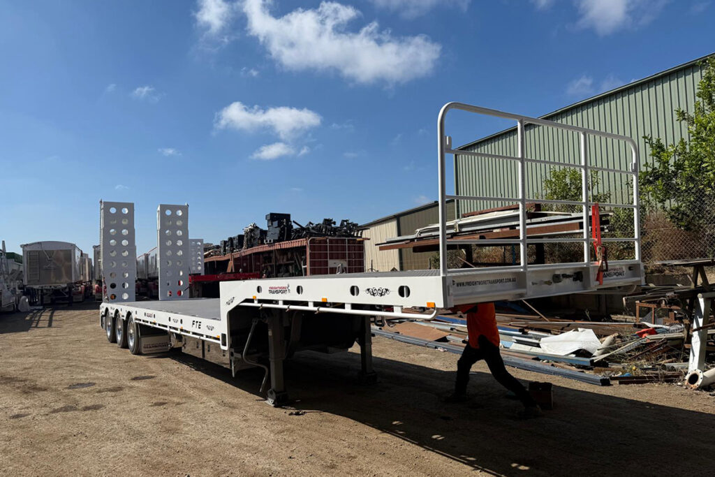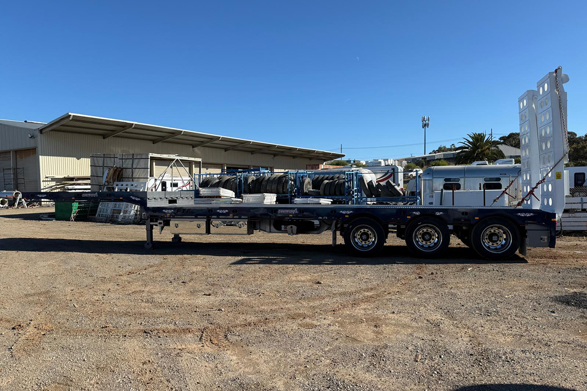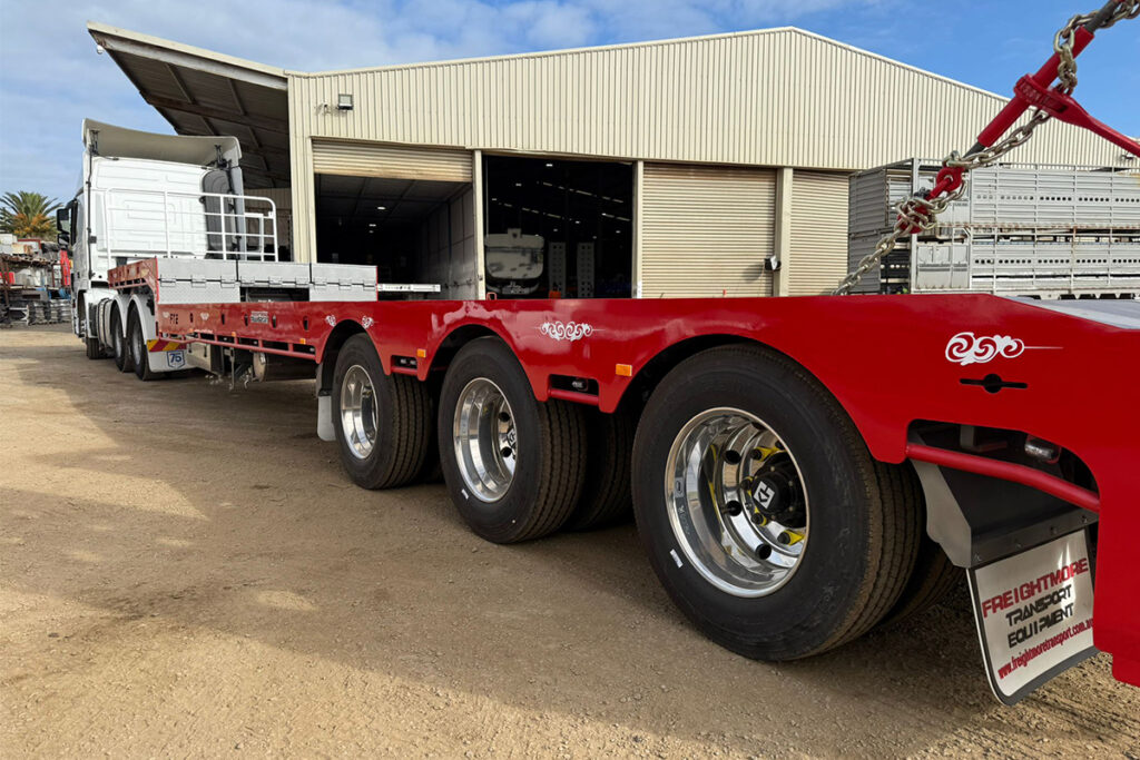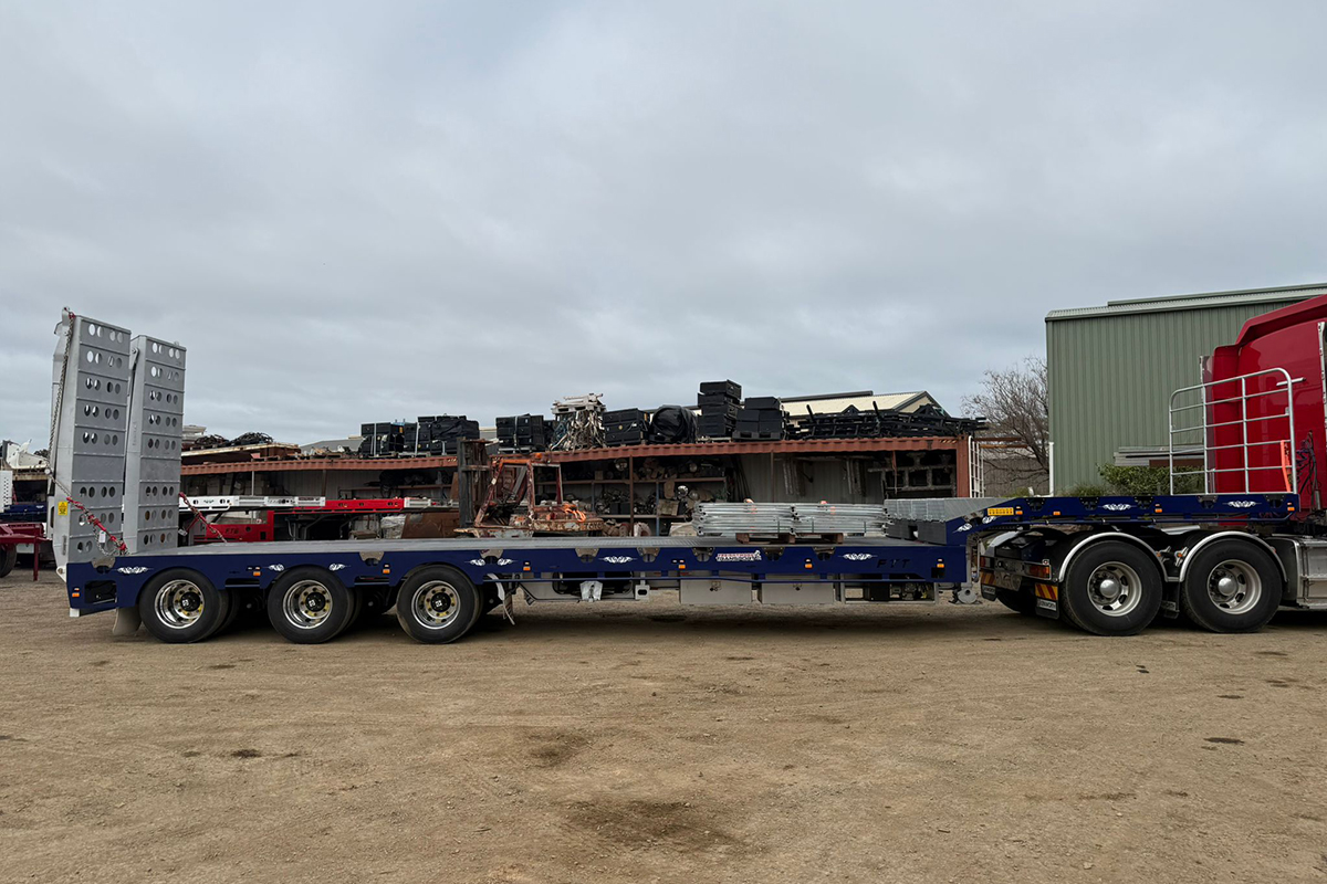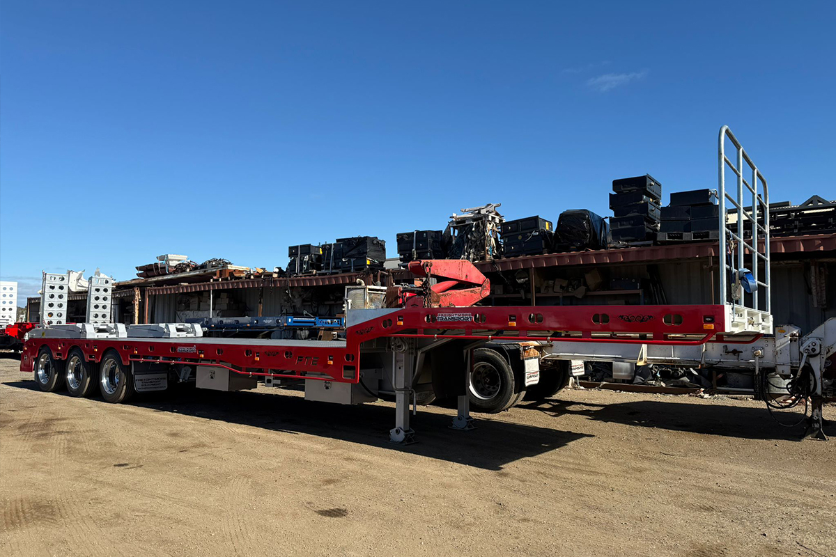 Heavy Duty, 3.5 m Hydraulic Widener , 3-way twist lock & container pins, 2 Toolboxes , Flip over Top deck Ramps, Gate Pockets, Alloy wheels , 20,000LBS Hydraulic Winch, Bi-Fold Ramps with single Beacon, Road Train Bracket, Airbag Suspension, K-Hitch Axles & K-Hitch Suspension, JOST or K-Hitch Landing Legs, EBS/ABS brakes, PBS compatible.