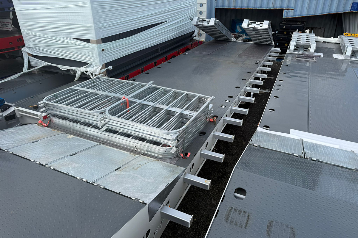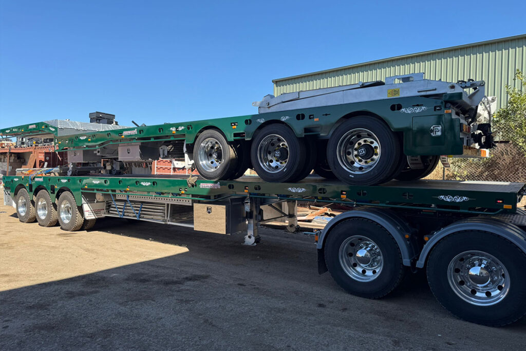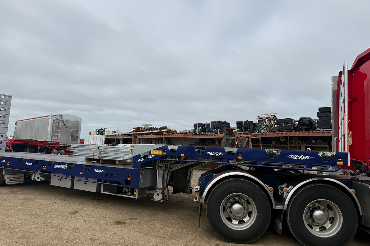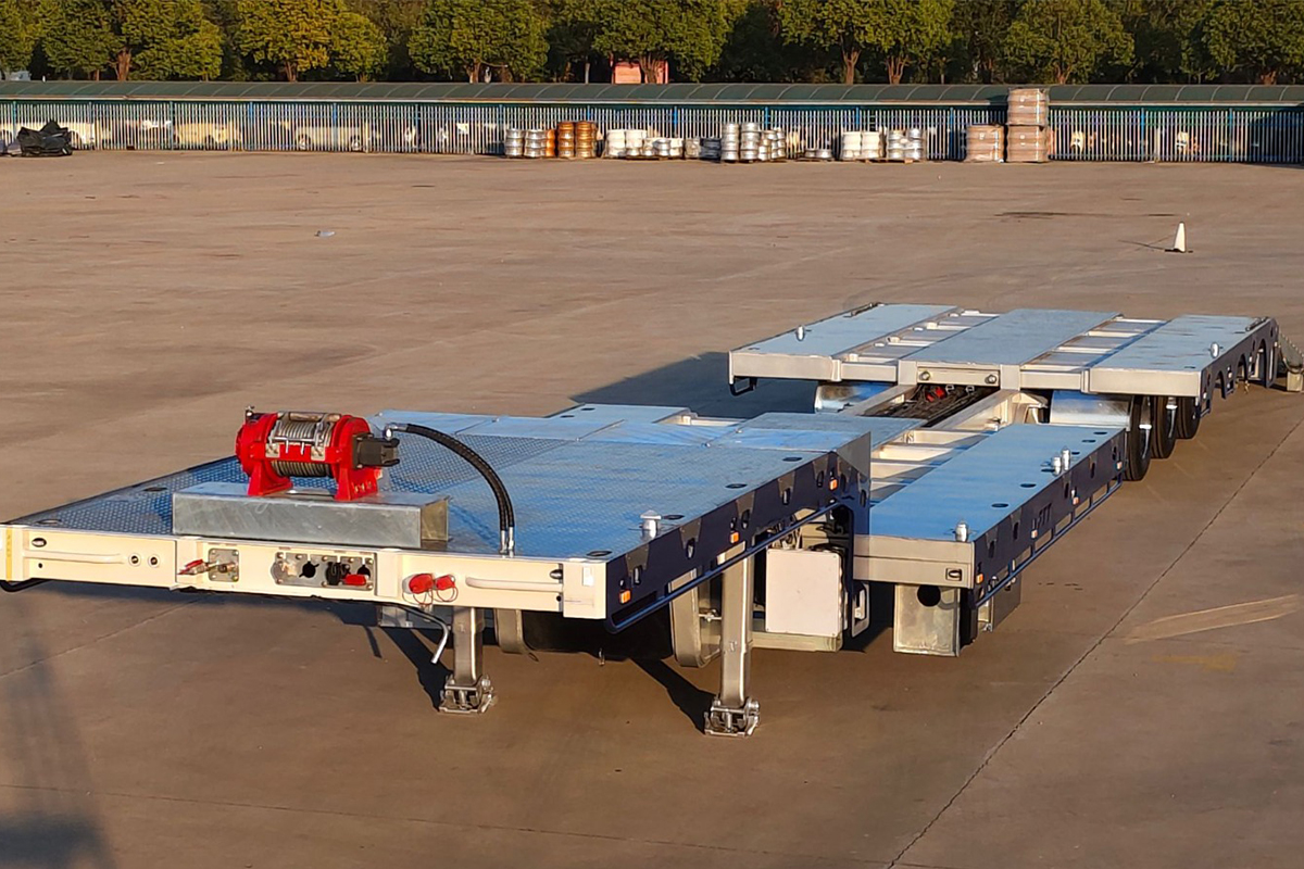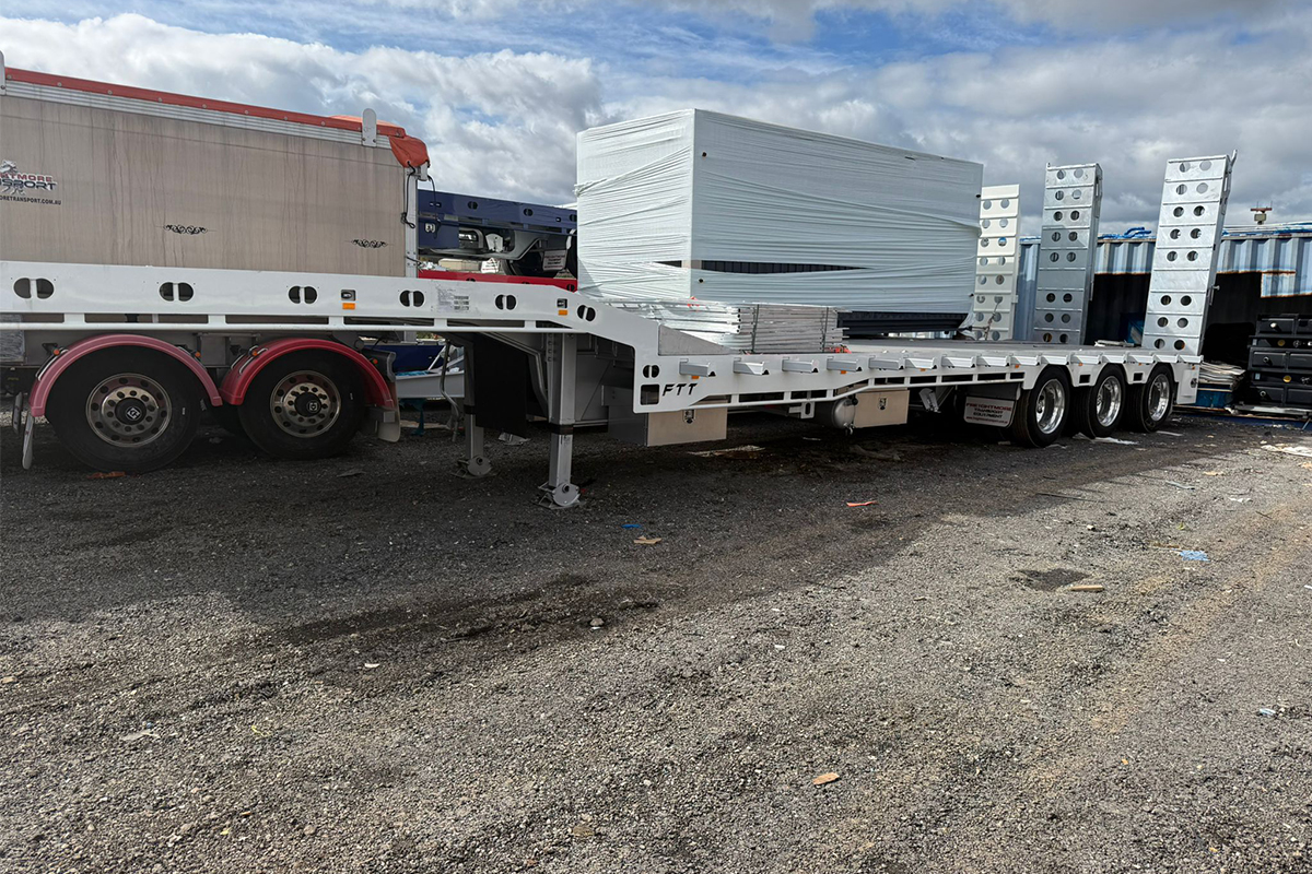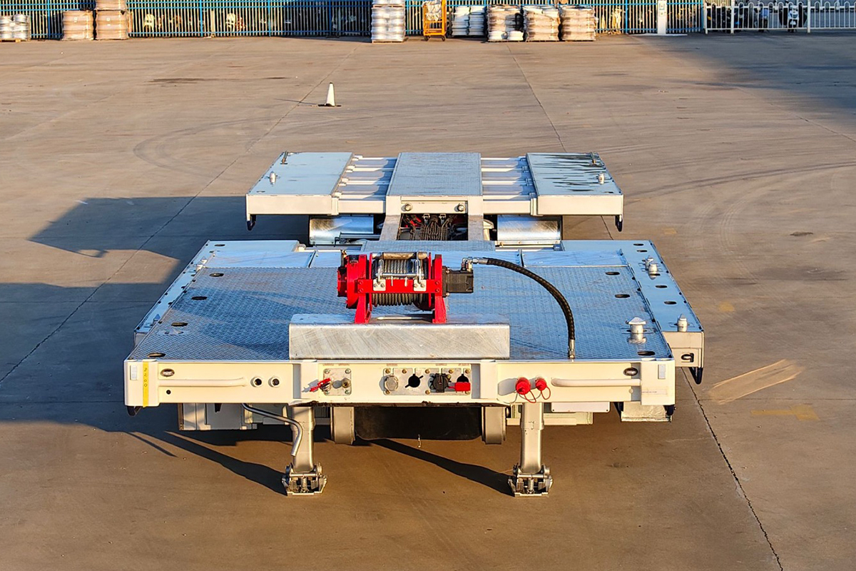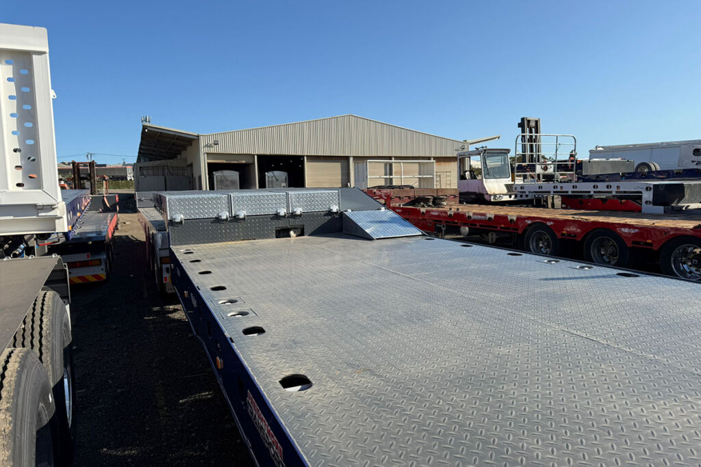 Heavy Duty, 3.5 m Hydraulic Widener , 3-way twist lock & container pins, 2 Toolboxes , Flip over Top deck Ramps, Gate Pockets, Alloy wheels , 20,000LBS Hydraulic Winch, Bi-Fold Ramps with single Beacon, Road Train Bracket, Airbag Suspension, K-Hitch Axles & K-Hitch Suspension, JOST or K-Hitch Landing Legs, EBS/ABS brakes, PBS compatible.