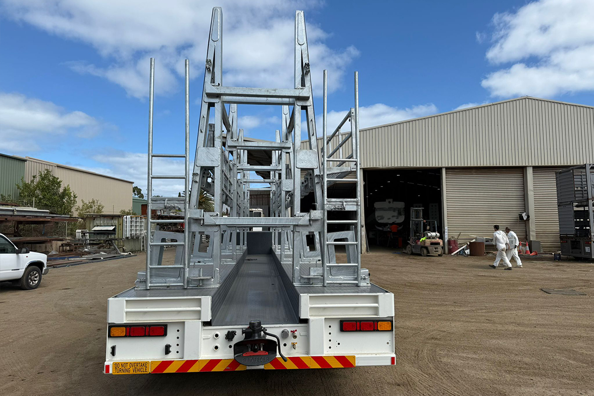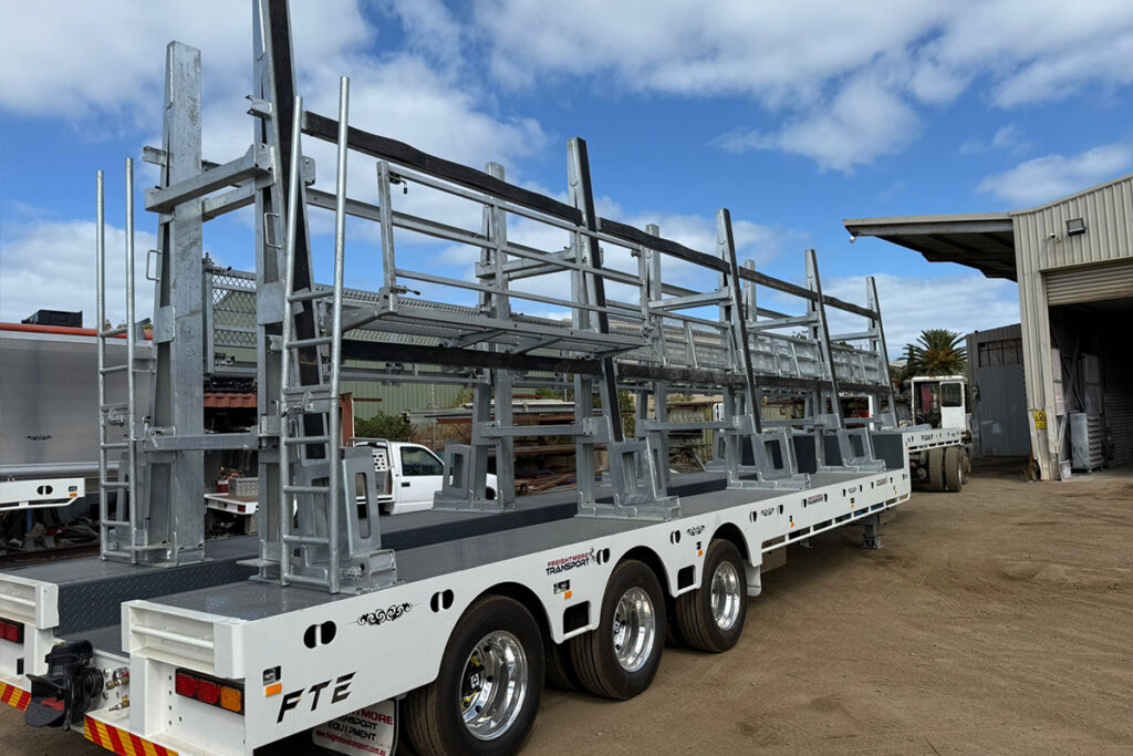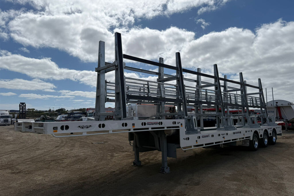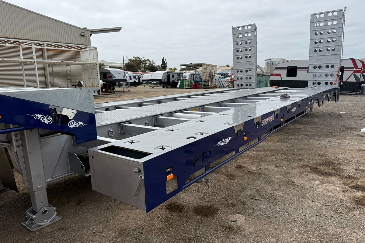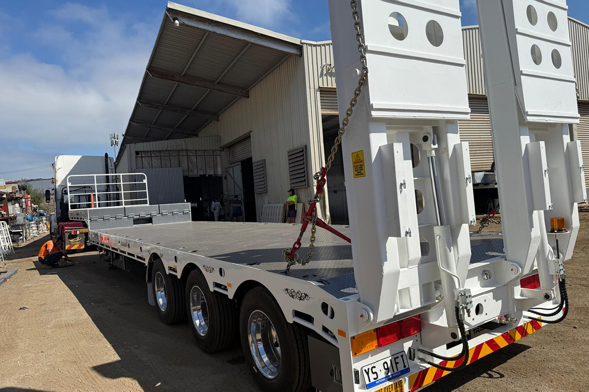 Ultra-Heavy Duty, PULL-OUTRIGGERS WIDE upto 3.2m , 3-way twist lock & container pins, 4 Toolboxes, Flip over Top deck Ramps, Gate Pockets with Set of Gates, Alloy wheels , 20,000LBS Electric Winch, Bi-Fold Ramps with Double Beacon, Road Train Bracket, Airbag Suspension, K-Hitch Axles & K-Hitch Suspension, JOST or K-Hitch Landing Legs, EBS/ABS brakes, PBS compatible.