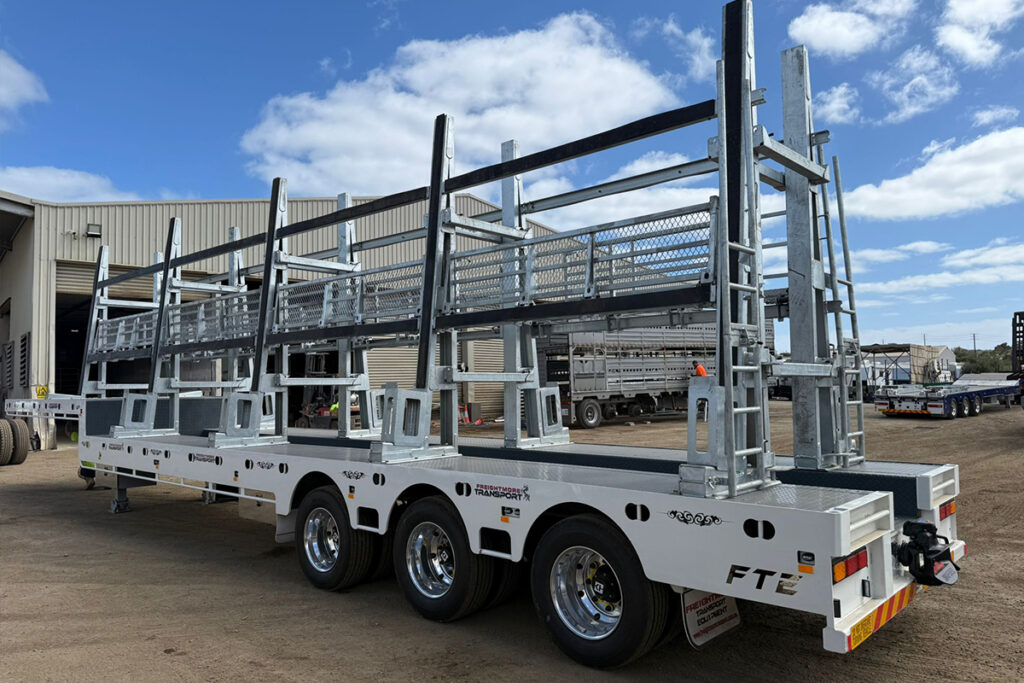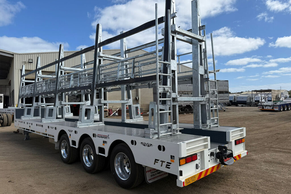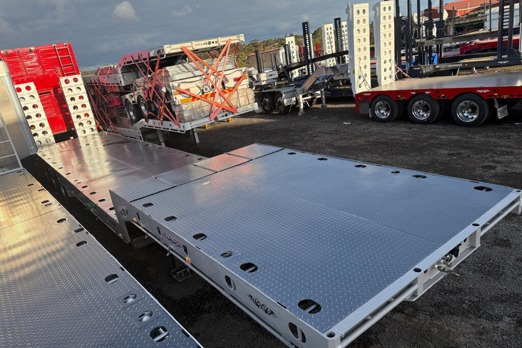 Ultra-Heavy Duty, 4.2m Multi Stage hydraulic Widener, 3-way twist lock & container pins, 4 Toolboxes, Flip over Top deck Ramps, Gate Pockets with Set of Gates, Alloy wheels , Radio Remote Control , Bi-Fold Ramps with Double Beacon, Road Train Bracket, Airbag Suspension, K-Hitch Axles & K-Hitch Suspension, JOST or K-Hitch Landing Legs, EBS/ABS brakes, PBS compatible.