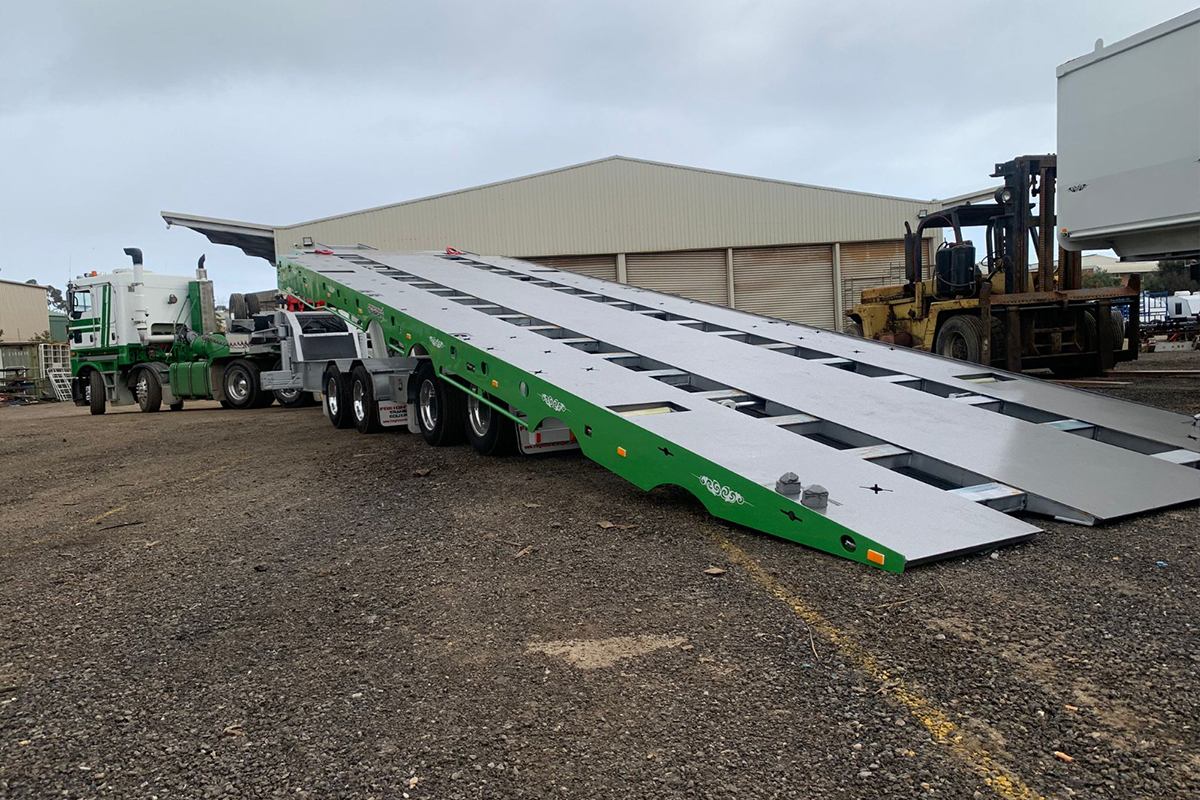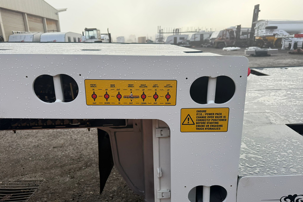 Springs or Airbag Suspension (extra), 3 way container locks for full 40ft or 2 x 20ft or a heavy duty 20ft in middle, 3 hydraulic winches 2 on bottom deck on tri axles and drop deck quad which are 17000lbs and a 11000lbs on top deck, mega tilt will have a massive 25000lbs on top of gooseneck, plenty of tie down on deck 4 toolbox, v-twin cyl diesel power pack with PTO (TRUCK HYDRAULICS) ITS EITHER & OR