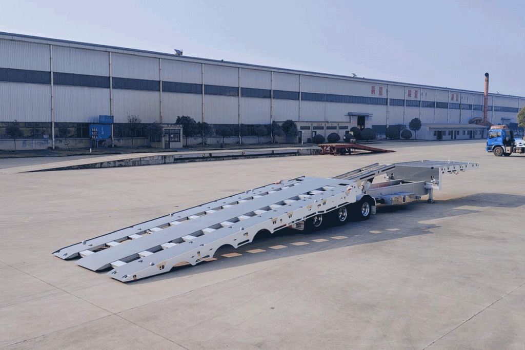 Premium Drop Deck Tri Axle Super Tilt Extendable With Hydraulic Rollers